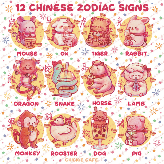 12 Chinese Zodiac Sticker Set (Stardust Holographic)