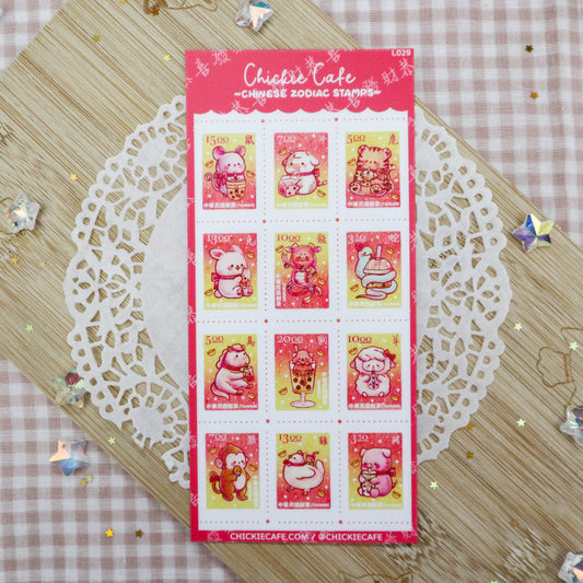 Chinese Zodiac Sign Stamps Sticker Sheet