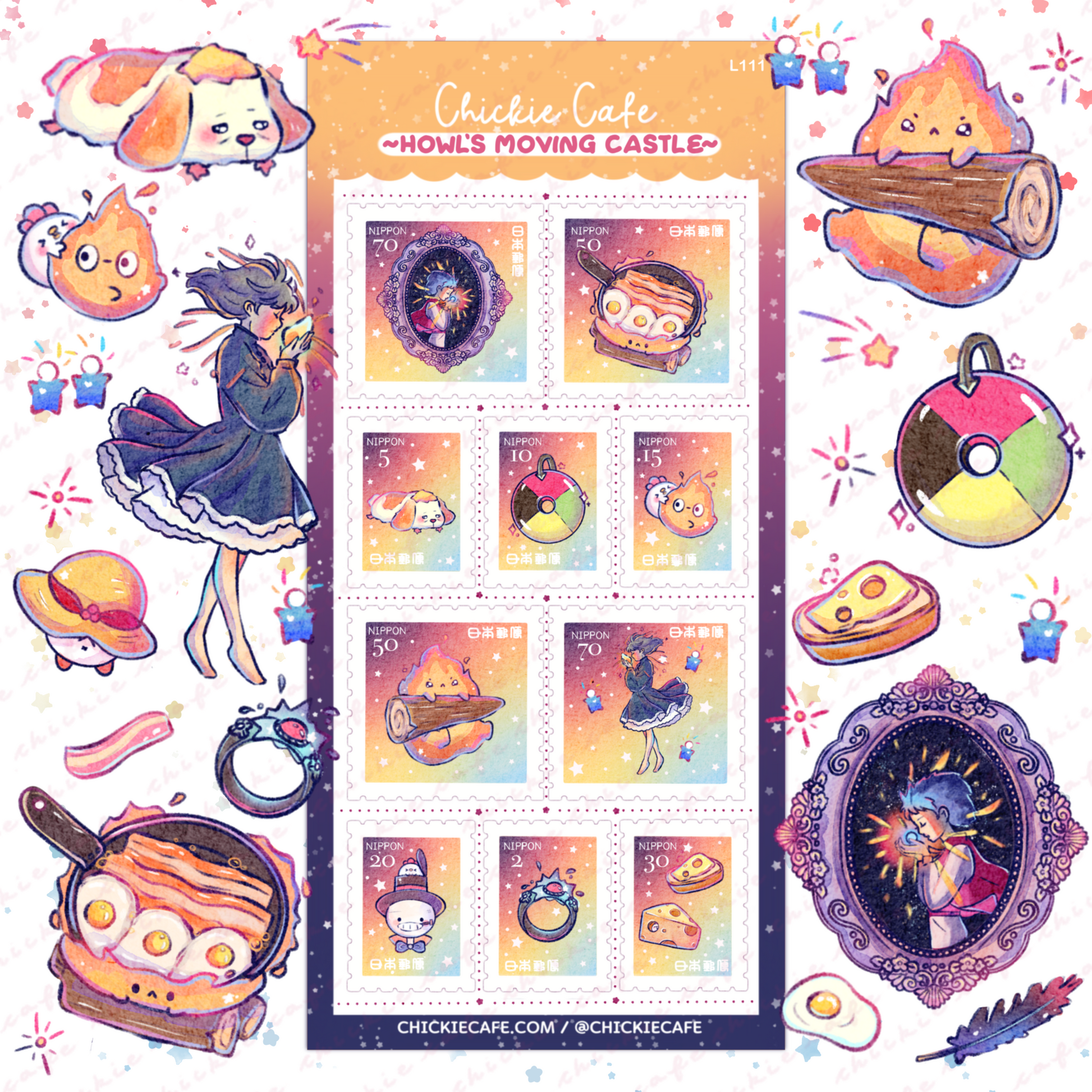 Howl's Moving Castle Stamps Sticker Sheet